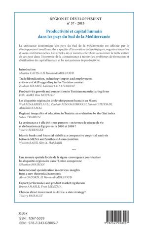 4. Productivité et capital humain dans les pays du Sud de la Méditerranée - Région et Développement