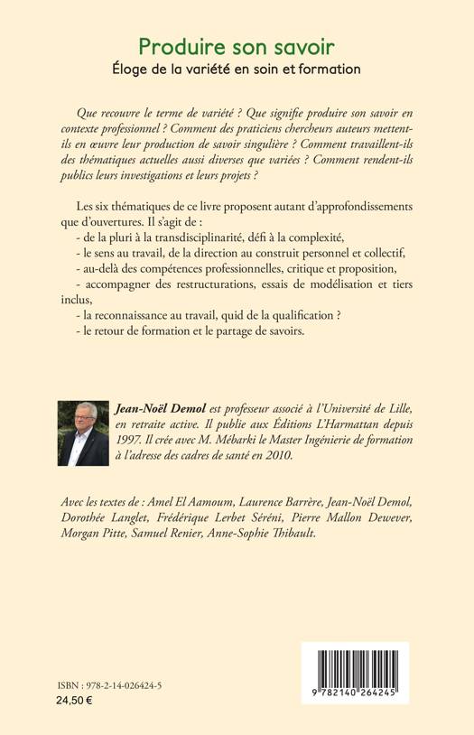 Que recouvre le terme de variété ? Que signifie produire son savoir en contexte professionnel ? Comment des praticiens chercheurs auteurs mettent-ils en œuvre leur production de savoir singulière ? Comment travaillent-ils des thématiques actuelles aussi diverses que variées ? Comment rendent-ils publics leurs investigations et leurs projets ? Les six thématiques de ce livre proposent autant d’approfondissements que d’ouvertures. Il s’agit de : de la pluri à la transdisciplinarité, défi à la complexité ; le sens au travail, de la direction au construit personnel et collectif ; au-delà des compétences professionnelles, critique et proposition ; accompagner des restructurations, essais de modélisation et tiers inclus ; la reconnaissance au travail, quid de la qualification ? ; le retour de formation et le partage de savoirs.