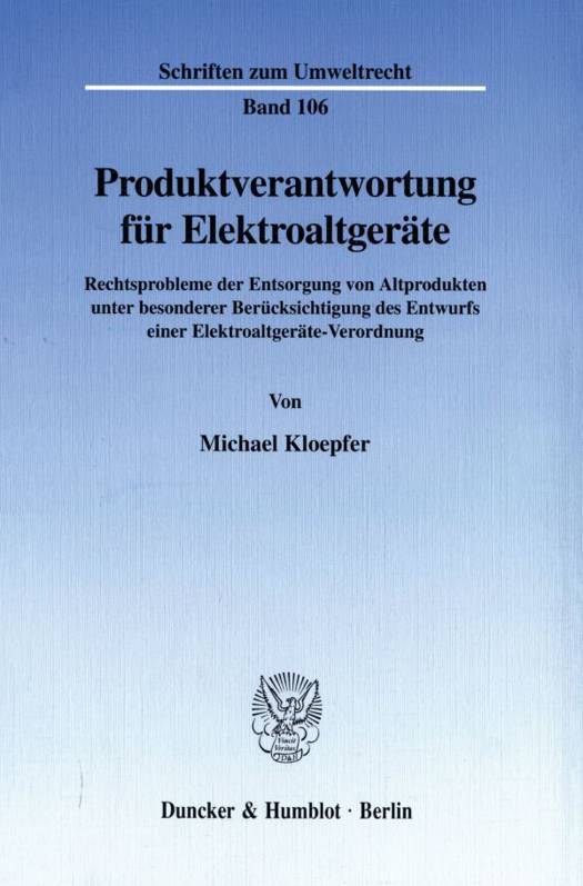 Gegen den Verordnungsentwurf sind umfassende einfachgesetzliche und vor allem verfassungsrechtliche Einwände, namentlich von Ossenbühl, erhoben worden. Michael Kloepfer geht diesen Einwänden nach und kommt zu dem Ergebnis, daß eine Rücknahmepflicht für gleichartige Fremdprodukte sowie für Alt-Altgeräte recht- und verfassungsmäßig wäre.