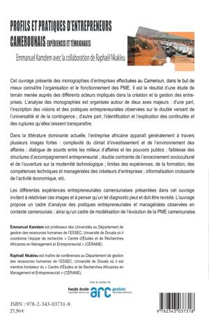 Cet ouvrage présente des monographies d'entreprises effectuées au Cameroun, dans le but de mieux connaître l'organisation et le fonctionnement des PME. Il est le résultat d'une étude de terrain menée auprès des différents acteurs impliqués dans la création et la gestion des entreprises. Les différentes expériences entrepreneuriales camerounaises présentées dans cet ouvrage invitent à relativiser ces images et à penser qu'un tel diagnostic peut et doit être revisité. L'ouvrage propose également un cadre de modélisation de l'évolution de la PME camerounaise.