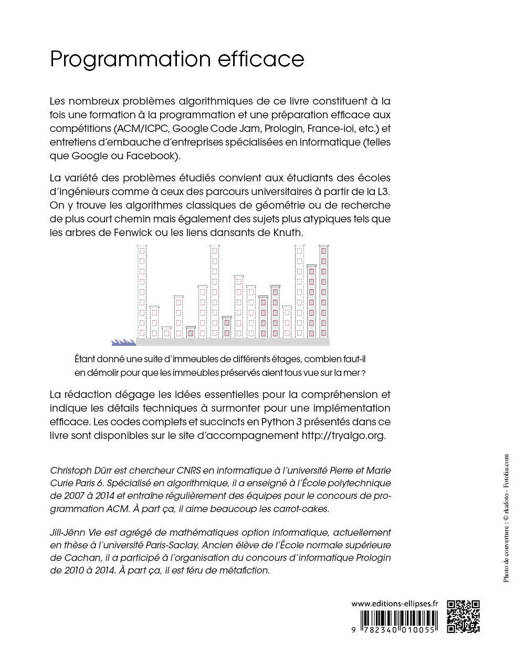 Les nombreux problèmes algorithmiques de ce livre constituent à la fois une formation à la programmation et une préparation efficace aux compétitions (ACM/ICPC, Google Code Jam, Prologin, France-ioi, etc.) et entretiens d’embauche d’entreprises spécialisées en informatique (telles que Google ou Facebook).