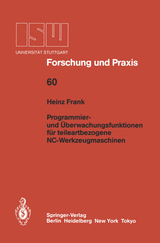 Die vorliegende Arbeit entstand wahrend meiner Tatigkeit als wissenschaftlicher Mitarbeiter am Institut für Steuerungs- technik der Werkzeugmaschinen und Fertigungseinrichtungen (ISW) der Un;versitat Stuttgart. Herrn Prof. Dr. -Ing. G. Pritschow danke ich für die wohl- wollende Unterstützung und die Anregungen wahrend des Ent- stehens der Arbeit sowie für die Obernahme des Hauptberichts. Mein herzlicher Dank gilt auch Herrn Prof. Dr. -Ing. A. Starr für die eingehende Durchsicht der Arbeit und die sich daraus ergebenden Hinweise. Herrn Prof. DTech. h. c. Dipl. -Ing. K. Tuffentsammer danke ich für seine Bereitschaft, den Mitbericht zu übernehmen. Weiterhin gilt mein Dank allen Mitarbeitern und Studenten am obenoenannten Institut, die in vielfaltiger Weise zum Ge- lingen der Arbeit beigetragen haben. Insbesondere möchte ich mich hierfür bei den Herren Dipl. -Ing. B. Walker, Dipl. -Ing. G. Häberle, Dipl-Ing. R. Viefhaus, Dipl. -Ing. E. Wagner und cand. -el. U. Haberle bedanken. Heinz Frank - 7 - Inhaltsverzeichnis Seite Abkürzungen, Formelzeichen, Symbole 1U Einleitung 14 1 2 Derzeitiger Stand bei der Programmierung teile- 16 artbezogener NC-Werkzeugmaschinen 2. 1 Programmierverfahren 17 2. 2 Aufgaben bei der Werkstattprogrammierung 19 2. 2. 1 Erstellen von NC-Steuerdaten 19 2. 2. 2 Testen von NC-Steuerdaten 22 2. 2. 3 Korrigieren von NC-Steuerdaten 24 2. 2. 4 Bewertung der Aufgaben 25 3 Teileorientierte Erstellung von NC-Steuerdaten 27 Festlegung der Anforderungen 3. 1 27 3. 2 Ermittlung von maschinenorientierten Daten in 27 einer NC 3. 3 Beschreibungsform für die NC-Steuerdaten 29 3. 3.