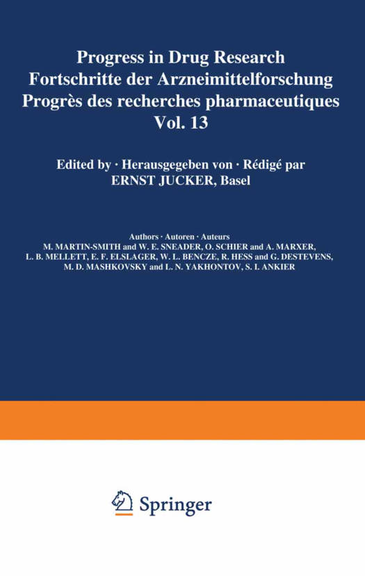 Ten years have elapsed since the appearance of the first Volume and it is with great pleasure that the Editor is now able to present Volume 13. During these ten years various fields of drug research have undergone important, partly revolutionary, changes. A number of these have already been dealt with, so that the series PROGRESS IN DRUG RESEARCH contains a comprehensive review of a substantial part of our current knowledge. The Editor is particularly grateful for the opportunity of transmitting to those connected with the development of drugs the extensive knowledge of the Authors, who, without exception, are themselves actively engaged in research. Drug research is currently in a state of transformation: reconsideration in the light of the past and reorientation with a view to the future. To a large extent this is due to the tumultuous developments in the last 20 years, developments which are unparalleled in the history of medicine and the consequences of which cannot yet be completely evaluated. Unfortunately, however, the current situation is not devoid of its unpleasant and even tragic aspects, aspects which fall outside the research worker's sphere of influence. Those connected with drug research, be they in industry, in universities or in clinics, are aware of these problems, and, as a result of this awareness, are all the more in need of an aid which will assist them in ascertaining the current position and in fixing future goals.