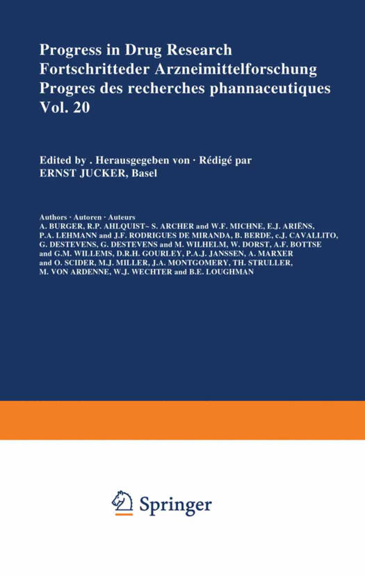 Volumes 18 and 19 of "Progress in Drug Research" differed from the earlier volumes insofar as they were concerned almost exclusively with problems in the field of Tropical Medicine. The editor and publishers believed that in this way some contribution could be made to the solution of some of the many problems with which the developing countries are burdened. The 20th volume, however, is in the customary form; it contains 17 contributions from various areas of drug research and therapy. Whereas the articles concentrate on a short representation of the progress which has already been made, nevertheless reference is also made to the many unsolved problems within the particular areas. The editor hopes that the 20th volume will not only represent a comprehensive review but will also be of some use in focusing further investigations on problems of medicine that have still not been overcome. The editor would also like to take this opportunity of expressing his gratitude to Dr. A. Naffor carefully working over the manuscripts and correcting proofs. Thanks are also due to the publishers and the printers, Druckerei Birkhauser, especially Dr. A. Birkhauser, Th. Birkhauser and C. Einsele, for their painstaking work on the printing and lay-out of the volume. August 1976 Dr. E. JUCKER Sandoz AG, Basel Vorwort Die Bande 18 und 19 der Fortschritte der Arzneimitte1forschung wichen insofern von den vorhergehenden Banden ab, a1s sie fast ausschliess1ich Prob1eme der Tropenkninkheiten behandelten.