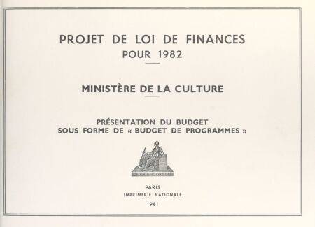 Projet de loi de finances pour 1982, présentation du budget sous forme de "budget de programmes" : ministère de la Culture E-BOOK