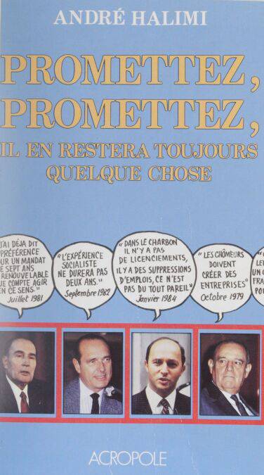 Dans cet essai polémique, André Halimi se livre à une redoutable radioscopie du discours électoral. Aucun parti, aucun leader politique ne sort indemne de ce jeu de massacre. André Halimi tire à boulets rouges sur nos politiciens vendeurs de vent et renvoie tout le monde dos à dos. C’est que le candidat chasseur de voix n’hésite devant aucun sacrifice : dépenses triplées, équipements soudain réalisés, crédits enfin débloqués ! Des raccordements autoroutiers aux traditionnels plans d’urbanisation en passant par la création d’un terrain de pétanque, tout est bon pour recueillir ces voix tant convoitées. Le caractère éphémère des promesses électorales ne trompe personne et ce livre stimulant, sans donner de leçons, en dit plus sur notre vie politique que beaucoup d’essais réputés « sérieux ».