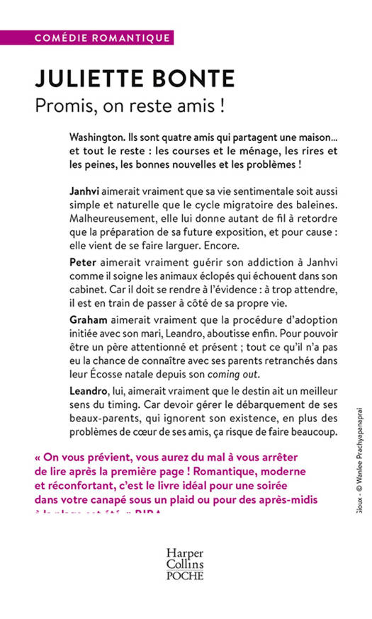 Janhvi aimerait vraiment que sa vie sentimentale soit aussi simple et naturelle que le cycle migratoire des baleines. Malheureusement, elle lui donne autant de fil à retordre que la préparation de sa future exposition, et pour cause : elle vient de se faire larguer. Encore. Peter aimerait vraiment guérir son addiction à Janhvi comme il soigne les animaux éclopés qui échouent dans son cabinet. Car il doit se rendre à l’évidence : à trop attendre, il est en train de passer à côté de sa propre vie. Graham aimerait vraiment que la procédure d’adoption initiée avec son mari, Leandro, aboutisse enfin. Pour pouvoir être un père attentionné et présent ; tout ce qu’il n’a pas eu la chance de connaître avec ses parents retranchés dans leur Écosse natale depuis son coming out. Leandro, lui, aimerait vraiment que le destin ait un meilleur sens du timing. Car devoir gérer le débarquement de ses beaux-parents, qui ignorent son existence, en plus des problèmes de cœur de ses amis, ça risque de faire beaucoup.