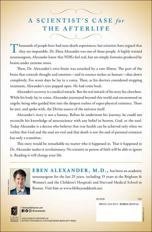 Alexander's story is not a fantasy. Before he underwent his journey, he could not reconcile his knowledge of neuroscience with any belief in heaven, God, or the soul. Today Alexander is a doctor who believes that true health can be achieved only when we realize that God and the soul are real and that death is not the end of personal existence but only a transition.