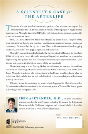 The #1 New York Times bestselling account of a neurosurgeon's own near-death experience--for readers of 7 Lessons from Heaven. Thousands of people have had near-death experiences, but scientists have argued that they are impossible. Dr. Eben Alexander was one of those scientists. A highly trained neurosurgeon, Alexander knew that NDEs feel real, but are simply fantasies produced by brains under extreme stress. Then, Dr. Alexander's own brain was attacked by a rare illness. The part of the brain that controls thought and emotion--and in essence makes us human--shut down completely. For seven days he lay in a coma. Then, as his doctors considered stopping treatment, Alexander's eyes popped open. He had come back.