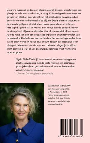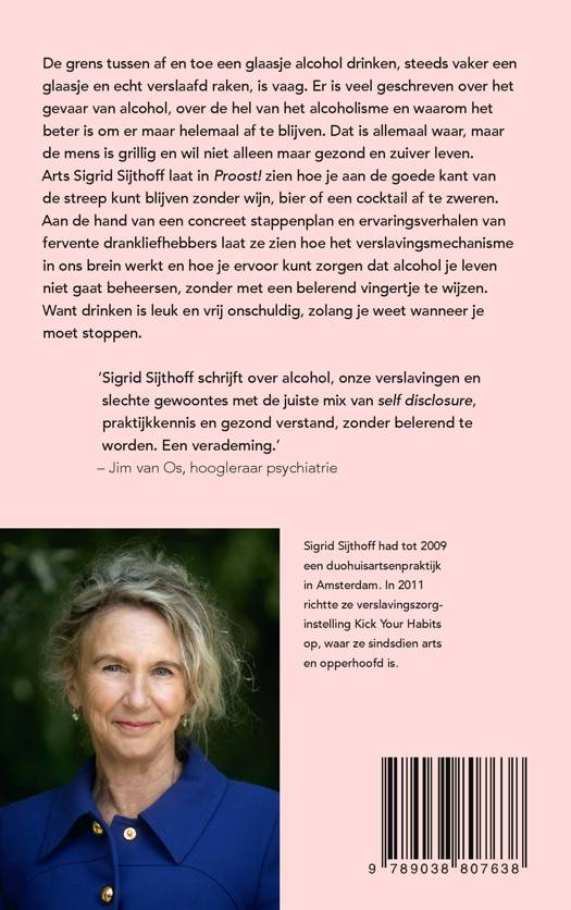 Arts Sigrid Sijthoff laat in Proost! zien hoe je aan de goede kant van de streep kunt blijven zonder wijn, bier of een cocktail af te zweren. Aan de hand van een concreet stappenplan en ervaringsverhalen van fervente drankliefhebbers laat ze zien hoe het verslavingsmechanisme in ons brein werkt en hoe je ervoor kunt zorgen dat alcohol je leven niet gaat beheersen, zonder met een belerend vingertje te wijzen. Want drinken is leuk en vrij onschuldig, zolang je weet wanneer je moet stoppen.