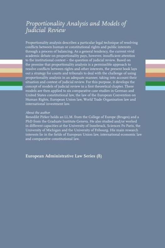 Proportionality analysis describes a particular legal technique of resolving conflicts between human or constitutional rights and public interests through a process of balancing. As a general tendency, the current vivid academic debate on proportionality pays, however, insufficient attention to the institutional context – the question of judicial review. Based on the premise that proportionality analysis is a permissible approach to resolve conflicts between rights and other interests, the present book lays out a strategy for courts and tribunals to deal with the challenge of using proportionality analysis in an adequate manner, taking into account their situation and context of judicial review. For this purpose, it develops the concept of models of judicial review in a first theoretical chapter. These models are then applied to six comparative case studies in German and United States constitutional law, the law of the European Convention on Human Rights, European Union law, World Trade Organisation law and international investment law.