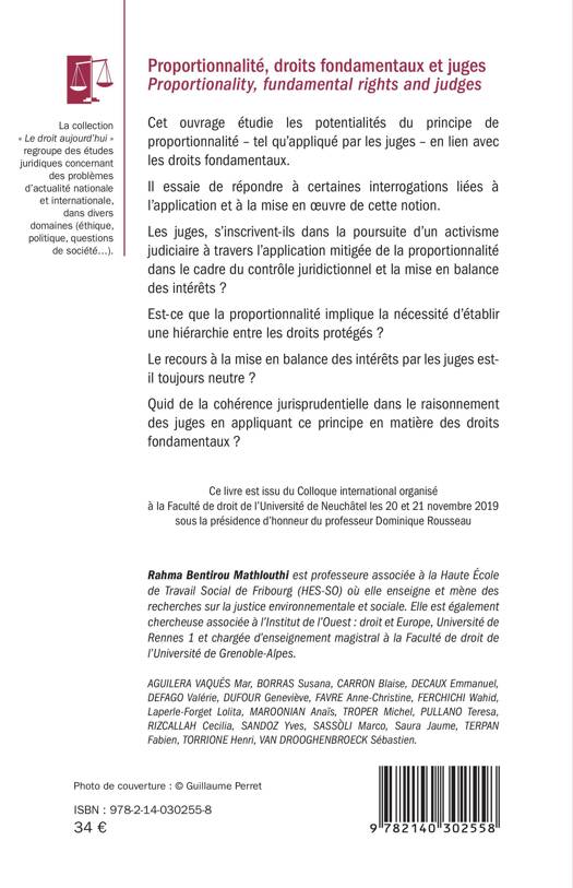 Cet ouvrage étudie les potentialités du principe de proportionnalité - tel qu'appliqué par les juges - en lien avec les droits fondamentaux. Il essaie de répondre à certaines interrogations liées à l'application et à la mise en oeuvre de cette notion. Les juges, s'inscrivent-ils dans la poursuite d'un activisme judiciaire à travers l'application mitigée de la proportionnalité dans le cadre du contrôle juridictionnel et la mise en balance des intérêts ? Est-ce que la proportionnalité implique la nécessité d'établir une hiérarchie entre les droits protégés ? Le recours à la mise en balance des intérêts par les juges est-il toujours neutre ? Quid de la cohérence jurisprudentielle dans le raisonnement des juges en appliquant ce principe en matière des droits fondamentaux ? Ce livre est issu du Colloque international organisé à la Faculté de droit de l'Université de Neuchâtel les 20 et 21 novembre 2019 sous la présidence d'honneur du professeur Dominique Rousseau