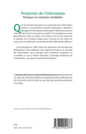 La protection de l'information n'est pas qu'une question purement technique. Il importe aussi de mettre en oeuvre une sensibilisation à la protection de l'information efficace. C'est pourquoi le CDSE (Club des Directeurs de Sécurité des Entreprises) a fait collaborer ici une vingtaine d'experts en sécurité de l'information, pour partager les meilleures pratiques en la matière.