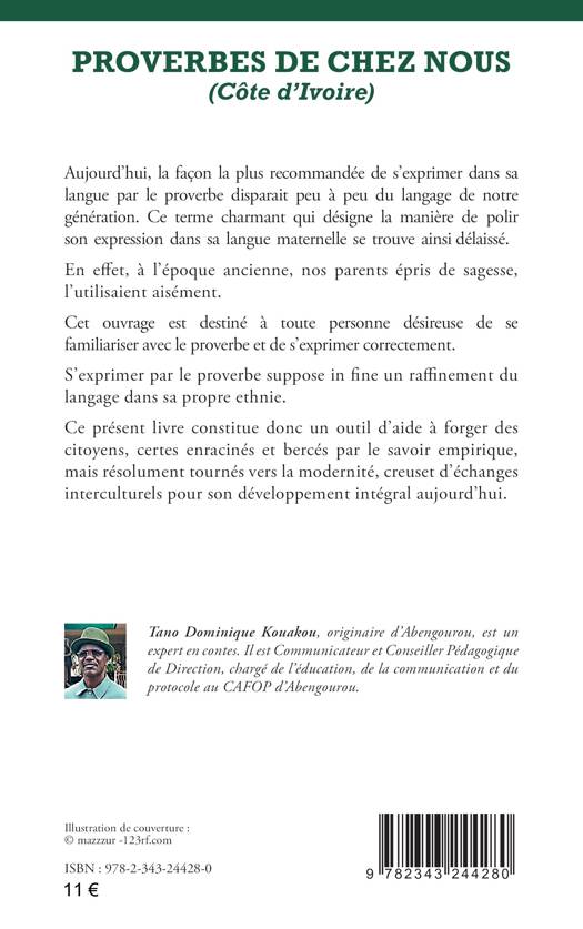 Aujourd’hui, la façon la plus recommandée de s’exprimer dans sa langue par le proverbe disparait peu à peu du langage de notre génération. Ce terme charmant qui désigne la manière de polir son expression dans sa langue maternelle se trouve ainsi délaissé. Cet ouvrage est destiné à toute personne désireuse de se familiariser avec le proverbe et de s’exprimer correctement. Il constitue donc un outil d’aide à forger des citoyens, certes enracinés et bercés par le savoir empirique, mais résolument tournés vers la modernité, creuset d’échanges interculturels pour son développement intégral aujourd’hui.