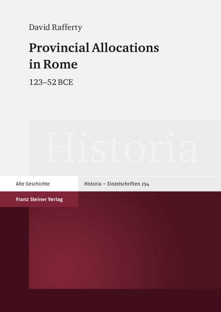 This study is the first comprehensive treatment of the provincial allocations system in the late Roman Republic, between the provincial law carried by Gaius Gracchus in 123 BCE and that carried by Pompeius Magnus in 52 BCE. It considers the actual process of allocations, from the Senate's decree of consular and praetorian provinces through to the transfer of command on the ground. Different chapters address the system of allotment (sortitio), the authorisation of troops and funds (ornatio), and the ritual prerequisites for departure, all based solidly on the surviving evidence. An appendix recording the Senate's year-by-year decisions supports this and allows us to see trends in the data.