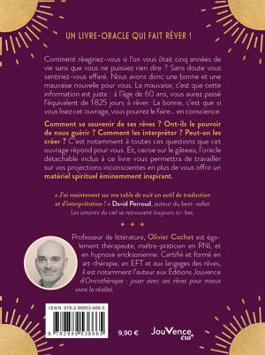 Comment se souvenir de ses rêves ? Ont-ils le pouvoir de nous guérir ? Comment les interpréter ? Peut-on les créer ? C’est notamment à toutes ces questions que cet ouvrage répond pour vous. Et, cerise sur le gâteau, l’oracle détachable inclus à ce livre vous permettra de travailler sur vos projections inconscientes en plus de vous offrir un matériel spirituel éminemment inspirant.