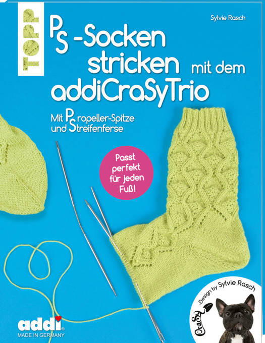 In diesem Buch finden sich kreative Sockenideen für das addiCraSyTrio - ein Must-have im Bücherregal jedes Sockenliebhabers. Mit Propellerspitze und Streifenferse sind diese Socken eine spannende Alternative zu den Stino-Socken, die sonst in fast jeder Schublade zu finden sind. Die PS-Socken sitzen perfekt an jedem Fuß und überzeugen durch einen hervorragenden Tragekomfort, indem sie die Weite der Käppchenferse mit der Einfachheit der Bumerangferse vereinen. Designed im CraSy Sylvie-Look machen sie durch ihre Farben und Muster bereits beim Stricken Spaß.