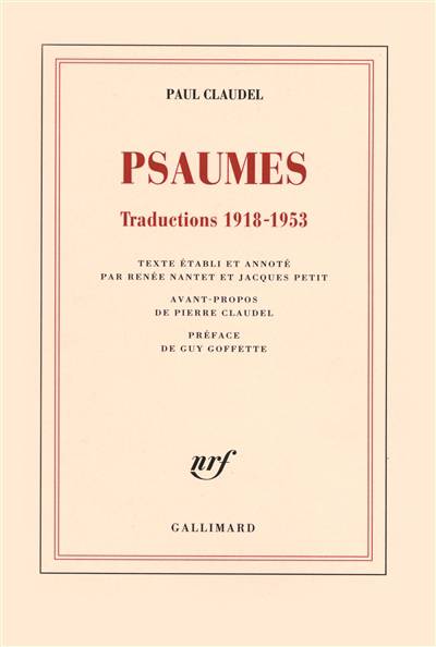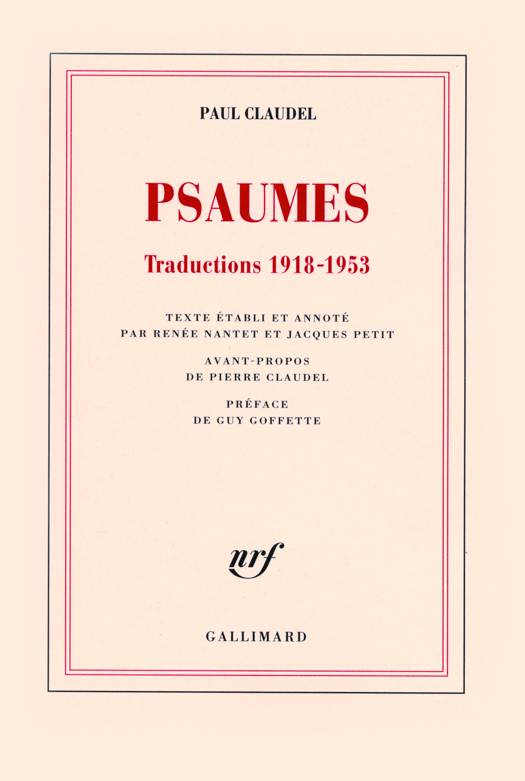 "Les psaumes, ça n'est pas fait pour dormir dans des vieux livres poussiéreux, ni pour être ânonné ou roucoulé sur des airs qui manquent d'air, de beauté, de culot. C'est fait pour vivre aujourd'hui, louer, crier, pleurer, prier, danser ce qui fait le fond et l'arrière-fond de notre présent avec toute la panoplie des douleurs, espoirs, tristesses, joies. Plutôt que de les retraduire, Paul Claudel a voulu les répondre comme l'écho, en les recréant en toute liberté dans cette langue charnelle, baroque, bruissante qui fait son génie. Le résultat est explosif." Guy Goffette.