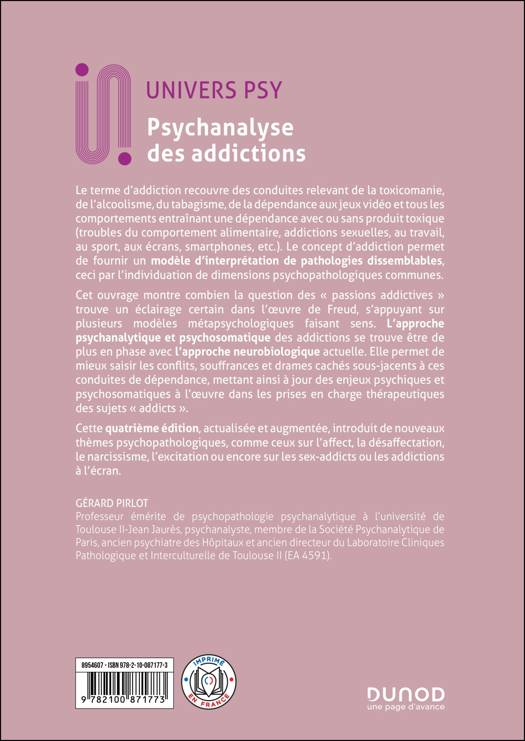 Le terme d’addiction recouvre les conduites de toxicomanie, d’alcoolisme, de tabagisme et toutes celles qui entraînent une dépendance avec ou sans toxiques (troubles du comportement alimentaire, addictions sexuelles, au travail, au sport, aux jeux, etc.). Cette notion permet de fournir ainsi un modèle d’interprétation de pathologies dissemblables, par l’individuation de dimensions psychopathologiques communes. L’ouvrage montre combien la question des « passions addictives », qui s’enracine dans l’œuvre de Freud, légitime une approche psychanalytique et psychosomatique en phase avec l’approche neurobiologique actuelle. Elle permet de mieux saisir les conflits, souffrances et drames cachés sous-jacents à ces conduites de dépendance, mettant ainsi à jour des enjeux psychiques et psychosomatiques à l'œuvre dans les prises en charge thérapeutiques des sujets « addicts ». Cette 4eédition, notablement augmentée, introduit de nouveaux thèmes psychopathologiques, comme ceux sur l’affect, la désaffectation, le narcissisme, l’excitation ou encore sur les sex-addicts ou les addictions à l’écran.