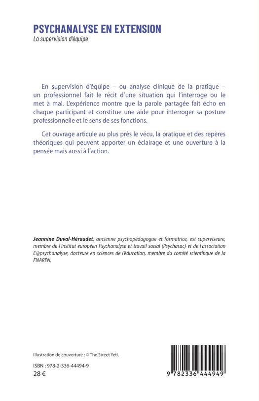 En supervision d'équipe - ou analyse clinique de la pratique - un professionnel fait le récit d'une situation qui l'interroge ou le met à mal. L'expérience montre que la parole partagée fait écho en chaque participant et constitue une aide pour interroger sa posture professionnelle et le sens de ses fonctions. Cet ouvrage articule au plus près le vécu, la pratique et des repères théoriques qui peuvent apporter un éclairage et une ouverture à la pensée mais aussi à l'action.