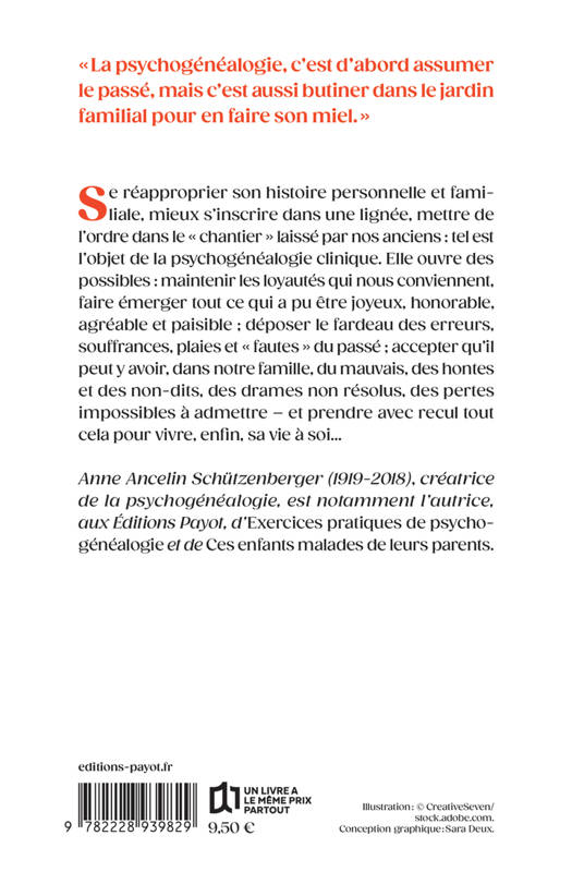 Se réapproprier son histoire personnelle et familiale, mieux s'inscrire dans une lignée, mettre de l'ordre dans le « chantier » laissé par nos anciens : tel est l'objet de la psychogénéalogie clinique. Elle ouvre des possibles : maintenir les loyautés qui nous conviennent, faire émerger tout ce qui a pu être joyeux, honorable, agréable et paisible ; déposer le fardeau des erreurs, souffrances, plaies et « fautes » du passé ; accepter qu'il peut y avoir, dans notre famille, du mauvais, des hontes et des non- dits, des drames non résolus, des pertes impossibles à admettre - et prendre avec recul tout cela pour vivre, enfin, sa vie à soi...