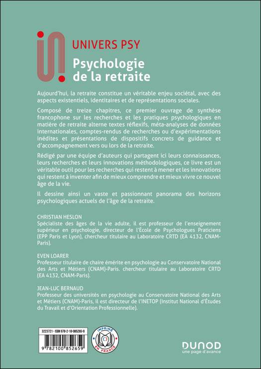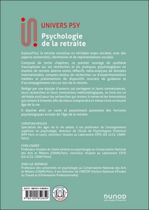 À partir des enjeux sociétaux et psychologiques de la retraite, cet ouvrage en examine les aspects existentiels, identitaires et de représentations sociales. Il présente différentes approches d'anticipation, de préparation et d’accompagnement à la retraite, aborde la vie de couple et le rôle de grand-parent lors de cette étape de l’existence et décrit plusieurs dispositifs de formation à la retraite, fondés sur les travaux les plus récents en psychologie. Il introduit plus largement une réflexion sur la place de la retraite et de tous les âges de la vie dans notre société post-moderne.