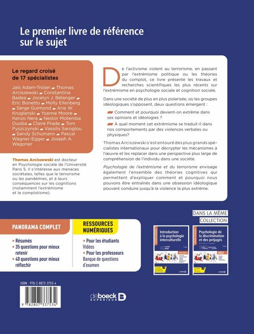 Psychologie de la radicalité et de l'extrémisme présente les travaux et recherches scientifiques les plus récents sur le sujet en psychologie sociale et cognition sociale : depuis la radicalité violente de rue jusqu’au terrorisme, en passant par l’extrémisme politique ou les théories du complot, sans faire l'économie d'un recul socio-historique.