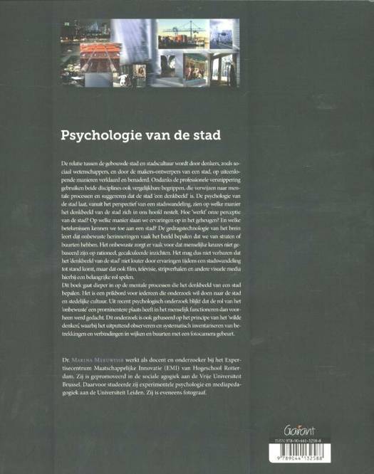 De relatie tussen de gebouwde stad en stadscultuur wordt door denkers, zoals sociaal wetenschappers, en door de makers-ontwerpers van een stad, op uiteenlopende manieren verklaard en benaderd. Ondanks de professionele versnippering gebruiken beide disciplines ook vergelijkbare begrippen, die verwijzen naar mentale processen en suggereren dat de stad ‘een denkbeeld’ is. De psychologie van de stad laat, vanuit het perspectief van een stadswandeling, zien op welke manier het denkbeeld van de stad zich in ons hoofd nestelt. Hoe ‘werkt’ onze perceptie van de stad? Op welke manier slaan we ervaringen op in het geheugen? En welke betekenissen kennen we toe aan een stad? De gedragstechnologie van het brein leert dat onbewuste herinneringen vaak het beeld bepalen dat we van straten of buurten hebben. Het onbewuste zorgt er vaak voor dat menselijke keuzes niet gebaseerd zijn op rationeel, gecalculeerde inzichten. Het mag dus niet verbazen dat het ‘denkbeeld van de stad’ niet louter door ervaringen tijdens een stadswandeling tot stand komt, maar dat ook film, televisie, stripverhalen en andere visuele media hierbij een belangrijke rol spelen. Dit boek gaat dieper in op de mentale processen die het denkbeeld van een stad bepalen. Het is een prikbord voor iedereen die onderzoek wil doen naar de stad en stedelijke cultuur. Uit recent psychologisch onderzoek blijkt dat de rol van het ‘onbewuste’ een prominentere plaats heeft in het menselijk functioneren dan voorheen werd gedacht. Dit onderzoek is ook gebaseerd op het principe van het ‘wilde denken’, waarbij het uitputtend observeren en systematisch inventariseren van betrekkingen en verbindingen in wijken en buurten met een fotocamera gebeurt.