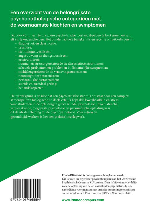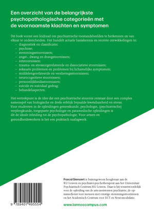 Het medische model dat ten grondslag ligt aan de huidige psychiatrische classificatie staat onder druk. De meeste aandoeningen zijn niet zo scherp af te lijnen als de handboeken lijken te suggereren. Psychopathologie brengt een overzicht van de belangrijkste psychische stoornissen met de voornaamste klachten en symptomen. Het boek vormt een leidraad om psychiatrische toestandsbeelden te herkennen en van elkaar te onderscheiden. Het vertrekpunt is de idee dat een psychiatrische stoornis ontstaat door een complex samenspel van biologische en deels erfelijk bepaalde kwetsbaarheid en stress. Tal van verdiepende praktijkvoorbeelden en relevante verwijzingen naar hedendaagse literatuur, film en strip illustreren dit toegankelijke overzichtswerk.