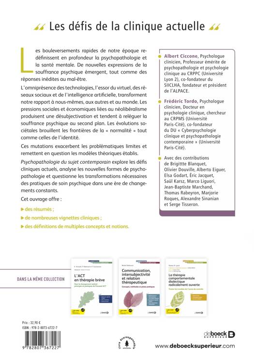 Ces mutations exacerbent les problématiques limites et remettent en question les modèles théoriques établis. Psychopathologie du sujet contemporain explore les défis cliniques actuels, analyse les nouvelles formes de psychopathologie et questionne les transformations nécessaires des pratiques de soin psychique dans une ère de changements constants.