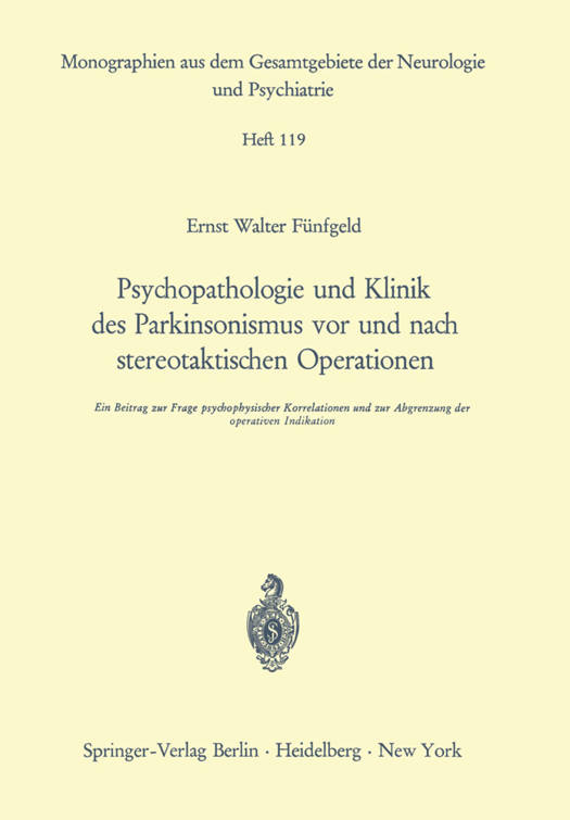 Gllickliche Umstande haben dazu beigetragen, daB die vorliegende Arbeit durch- geflihrt werden konnte. Es war kein leichter EntschluB, allein zu diesem Zweck Jahre an der Freiburger Neurochirurgischen Universitatsklinik zu arbeiten. Aber nur der langdauernde enge Kontakt zu den Patienten konnte die Beobachtungen erbringen, die flir diese Untersuchung notwendig waren. Aufgeschlossenheit und Vertrauen von Kranken und Angehorigen gaben mir Ansporn, Schwierigkeiten zu liberwinden. Herr Professor RIECHERT nahm an dies en Untersuchungen so vie! Anteil, daB er mich von anderer Arbeit freiste!lte und lediglich mit Diagnostik sowie Vor- und Nachbehandlung der Patienten seiner Klinik betraute. Seinem Verstandnis, seiner Unterstlitzung und seinem stets bereiten Rat ist das Zustandekommen dieser Arbeit zu danken. Durch das Entgegenkommen von Herrn Professor RUFFIN und die Hilfe von Herrn Professor DERWORT konnten in der Psychiatrischen und Nervenklinik in Freiburg Tremorregistrierungen durchgeflihrt werden. Das Interesse von Herrn Profes- sor JUNG erlaubte langere Nachbehandlungen in der Neurologischen Klinik. Die Ein- richtung einer experimentalpsychologischen Untersuchungsreihe und die Ausflihrung von Testuntersuchungen war moglich dank der Unterstlitzung des Institutes flir Psychologie und Charakterologie der Universitat Freiburg (Direktor: Prof. HEISS), insbesondere von Herrn Professor WEWETZER, jetzt GieBenlLahn. Von Frau BARBARA SCHITTENHELM und Fraulein INGRID ZAAR wurden die neurologischen UntersudlUngsbefunde aus den Krankenblattern extrahiert und die planimetrischen Messungen der Pneumencephalo- gramme durchgeflihrt. Hier in Homburg/Saar habe ich Herrn Dr. BROEREN flir die statistischen Berechnungen zu danken. Mannigfaltigen Rat und Hilfe erhielt ich von Herrn Professor WITTER; ihm verdanke ich die kritische Durchsicht des Manuskriptes.