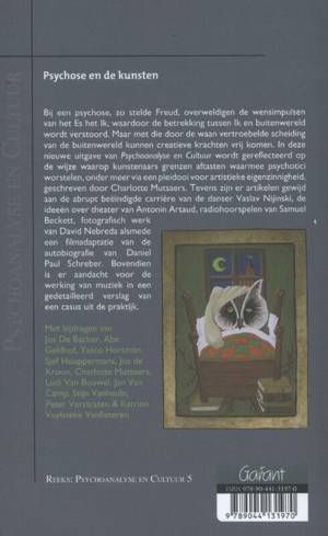 Bij een psychose, zo stelde Freud, overweldigen de wensimpulsen van het Es het Ik, waardoor de betrekking tussen Ik en buitenwereld wordt verstoord. Maar met die door de waan vertroebelde scheiding van de buitenwereld kunnen creatieve krachten vrij komen. In deze nieuwe uitgave van Psychoanalyse en Cultuur wordt gereflecteerd op de wijze waarop kunstenaars grenzen aftasten waarmee psychotici worstelen, onder meer via een pleidooi voor artistieke eigenzinnigheid, geschreven door Charlotte Mutsaers. Tevens zijn er artikelen gewijd aan de abrupt beëindigde carrière van de danser Vaslav Nijinski, de ideeën over theater van Antonin Artaud, radiohoorspelen van Samuel Beckett, fotografisch werk van David Nebreda alsmede een filmadaptatie van de autobiografie van Daniel Paul Schreber. Bovendien is er aandacht voor de werking van muziek in een gedetailleerd verslag van een casus uit de praktijk.