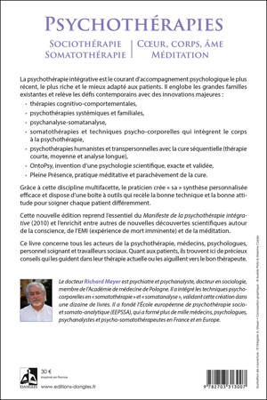 La psychothérapie intégrative est le courant d'accompagnement psychologique le plus récent, le plus riche et le mieux adapté aux patients. Il englobe les grandes familles existantes et relève les défis contemporains avec des innovations majeures : thérapies cognitivo-comportementales, psychothérapies systémiques et familiales, psychanalyse-somatanalyse, somatothérapies et techniques psycho-corporelles qui intègrent le corps à la psychothérapie, psychothérapies humanistes et transpersonnelles avec la cure séquentielle (thérapie courte, moyenne et analyse longue), OntoPsy, invention d'une psychologie scientifique, exacte et validée, Pleine Présence, pratique méditative et parachèvement de la cure. Grâce à cette discipline multifacette, le psychothérapeute crée « sa » synthèse personnalisée efficace et dispose d'une boîte à outils. Quant aux patients, ils trouvent ici de précieux conseils qui les guident dans leur thérapie actuelle ou les aiguillent vers le bon thérapeute.