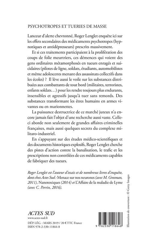 En s'appuyant sur des études médico-scientifiques et des documents historiques explosifs, Roger Lenglet cherche des pistes d'action contre la banalisation, le trafic et les prescriptions non contrôlées de ces médicaments capables de fabriquer des tueurs.