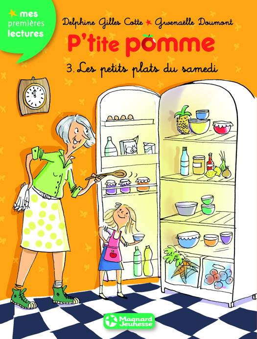 Résumé : P'tite pomme déjeune tous les jours chez sa mamie. Et tous les jours, sa mamie cuisine un bon petit plat. Le lundi, c'est du poulet. Le mardi, des petits pains au fromage. Le mercredi... le jeudi... le vendredi... Mais que se passe-t-il le samedi ? Eh bien, mamie mitonne un petit plat qui détonne !
