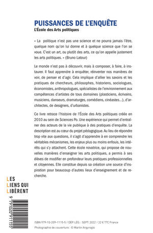 En septembre 2010, à l'initiative de Bruno Latour débutait dans une salle de Sciences Po une étrange et heureuse expérience, qui ne s'est jamais arrêtée depuis. Une aventure pédagogique singulière prenait son élan, résultat d'une réflexion au croisement des sciences sociales, de la politique et des arts. Ce livre raconte l'évolution de l'École des arts politiques (aussitôt surnommée SPEAP), qui a largement participé à l'éclosion d'un riche débat intellectuel, français et international, autour du nouveau régime climatique compris non comme un « sujet » parmi d'autres mais comme l'occasion de réinterroger l'ensemble des manières de voir, de penser et d'agir.