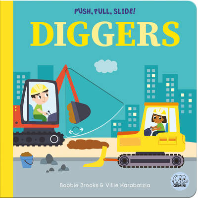 Explore and learn all about the construction site and construction vehicles with this interactive book that's full of diggers and dump trucks to move as you push, pull, and slide the card tabs on the pages!