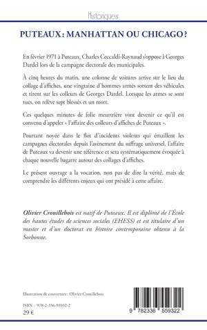 En février 1971 à Puteaux, Charles Ceccaldi-Raynaud s'oppose à Georges Dardel lors de la campagne électorale des municipales. A cinq heures du matin, une colonne de voitures arrive sur lieu du collage d'affiches, une vingtaine d'hommes armés sortent des véhicules et tirent sur les colleurs de Georges Dardel. Lorsque les armes se sont tues, on relève sept blessés et un mort. Ces quelques minutes de folie meurtrière vont devenir ce qu'il est convenu d'appeler l'affaire des colleurs d'affiches de Puteaux . Pourtant noyée dans le flot d'incidents violents qui émaillent les campagnes électorales depuis l'avènement du suffrage universel, l'affaire de Puteaux va devenir une référence et sera systématiquement évoquée à chaque nouvelle bagarre autour des collages d'affiches. Le présent ouvrage a la vocation, non pas de dire la vérité, mais de comprendre les différents enjeux qui ont présidé à cette affaire.