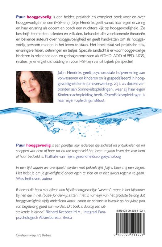 Puur hooggevoelig, een compleet en praktisch boek voor hooggevoelige mensen van Jolijn Hendriks is een echt praktisch, niet zweverig boek voor hooggevoelige mensen. Jolijn Hendriks geeft in haar boek Puur hooggevoelig vanuit een psychologische benadering eenvoudige en begrijpelijke handvatten en tips om je als hoogsensitief mens al snel beter in je vel te voelen. Als hooggevoelig persoon hoef je niet altijd maar binnen te blijven of je rustig te houden. Juist door gebruik te maken van je talenten en je hooggevoeligheid leer je om volop in het leven te staan en te genieten.