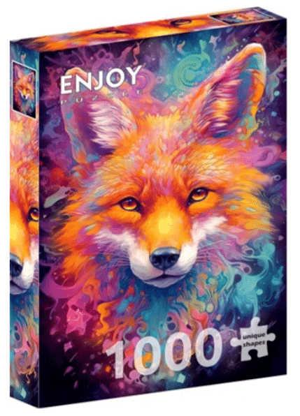 Legpuzzel met een illustratie van een kleurijke vos. 1000 puzzelstukjes samen 48 × 68 cm.