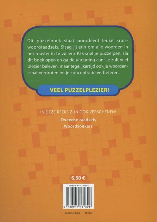 Dit puzzelboek staat boordevol leuke kruiswoordraadsels. Slaag jij erin om alle woorden in het rooster in te vullen? Pak snel je puzzelpen, sla dit boek open en ga de uitdaging aan! Je zult veel plezier beleven, maar tegelijkertijd je woordenschat vergroten en je concentratie verbeteren. Veel puzzelplezier!