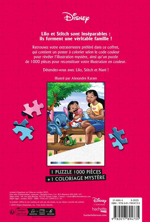 Ce coffret contient : - le puzzle déjà colorisé, 1 000 pièces, 478 x 690 mm ; - un poster "Coloriages Mystères" à colorier, 430 x 300 mm.