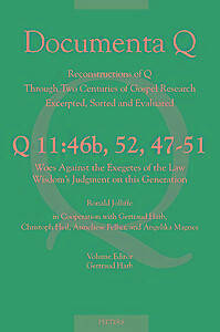 The tenth volume in the series Documenta Q is concerned with the reconstruction of the Q text behind Luke 11:46b-48, 52 par. Matt 23:4, 13, 29-32 ("Woes against the Exegetes of the Law") and Luke 11:49-51 par. Matt 23:34-36 ("Wisdom's Judgment on this Generation"). The thematically related passage Q 11:39a-44 ("Woes against the Pharisees") will be published soon in a separate volume. The International Q Project's presentation of the critical text of Q 11:46b-52, together with the exhaustive history of research on which it is based, will considerably enhance research on the Sayings Gospel Q, the historical Jesus and Jewish-Christian relations. The database and evaluations are expanded and revised versions of those presented and discussed at the meetings of the International Q Project in Claremont, CA 1991 and Washington, D.C. 1993. Just prior to the bibliography at the conclusion of the volume the resultant critical text of Q 11:46b-52 is printed. This Greek text is followed by English, German and French translations. (Lucan chapter and verse numeration is used as a convenience and a mere convention.)