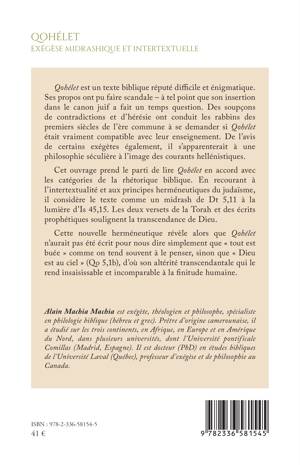 Qohélet est un texte biblique réputé difficile et énigmatique. Ses propos ont pu faire scandale - à tel point que son insertion dans le canon juif a fait un temps question. Des soupçons de contradictions et d'hérésie ont conduit les rabbins des premiers siècles de l'ère commune à se demander si Qohélet était vraiment compatible avec leur enseignement. De l'avis de certains exégètes également, il s'apparenterait à une philosophie séculière à l'image des courants hellénistiques. Cet ouvrage prend le parti de lire Qohélet en accord avec les catégories de la rhétorique biblique. En recourant à l'intertextualité et aux principes herméneutiques du judaïsme, il considère le texte comme un midrash de Dt 5,11 à la lumière d'Is 45,15. Les deux versets de la Torah et des écrits prophétiques soulignent la transcendance de Dieu. Cette nouvelle herméneutique révèle alors que Qohélet n'aurait pas été écrit pour nous dire simplement que tout est buée comme on tend souvent à le penser, sinon que Dieu est au ciel (Qo 5,1b), d'où son altérité transcendantale qui le rend insaisissable et incomparable à la finitude humaine.
