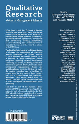 This book has been prepared for DBA candidates to illustrate the development of qualitative research approaches. Each chapter provides a voice regarding qualitative research as it is practiced in many management science disciplines, including strategy, management accounting and control, marketing, information systems management, finance, human resources management, organizational theory, and multidisciplinary research. Written to make the content accessible and to facilitate its appropriation by the readers, these chapters each offer a presentation of their disciplinary positioning, their methodological steps, the production of their results, and the formulation of their managerial recommendations more specifically.