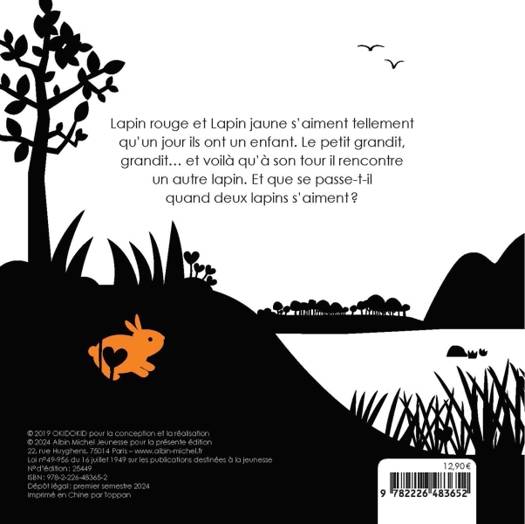 Lapin rouge et Lapin jaune s'aiment tellement qu'un jour ils ont un enfant. Le petit grandit, grandit... et voilà qu'à son tour il rencontre un autre lapin. Et que se passe-t-il quand deux lapins s'aiment ?