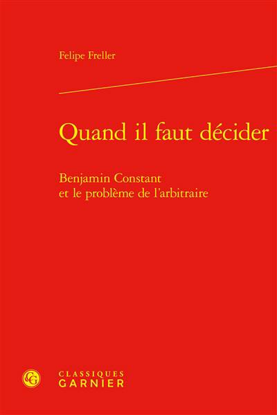Une étude sur la décision en politique du point de vue du libéralisme défendu par B. Constant, l'un des pères fondateurs de cette doctrine. L'auteur montre de quelle façon le penseur a réfléchi aux situations qui requièrent une décision, lorsque celle-ci ne peut se fonder sur l'application d'un principe ou d'une loi préalable.