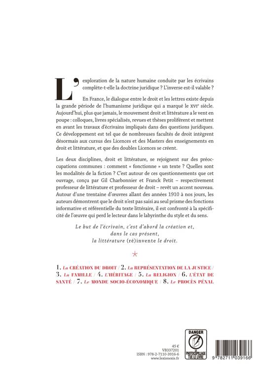 L'ouvrage propose l'étude de plusieurs textes littéraires du XXe et du XXIe siècle dans lesquels des problématiques juridiques sont mises en scène et traitées. Les possibilités de fiction, offertes par la littérature, présentent dès lors le droit sous un angle original, particulièrement inspirant pour les juristes.