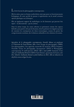La forêt fascine les photographes contemporains. Elle les attire, pour ses formes enchevêtrées ainsi que pour ses fonctionnements biologiques, de sorte qu’elle les pousse à expérimenter sur le motif certaines options plastiques ou techniques. Elle est également support de mythologies ou de fantasmes qui peuvent être repris – ou déconstruits – par les artistes. Dans le même temps, les zones arborées se présentent comme des espaces hybrides, pour partie créés par les hommes, dont la patiente investigation permet de constater les conséquences de choix économiques, comme de penser des comportements sociétaux, des évolutions culturelles et des relations à la nature.