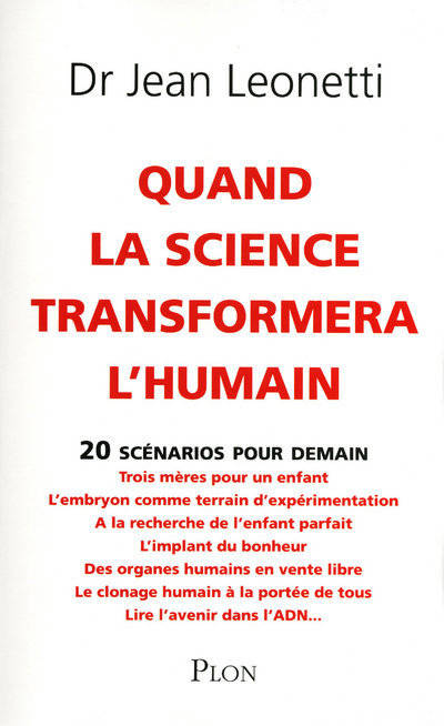 Pure science-fiction ou réalité à venir ? Illustrant ce que pourrait être la génétique des trente prochaines années, le docteur Jean Leonetti s'interroge sur la dignité humaine, la commercialisation du vivant ou le risque d'eugénisme : mères porteuses, clonage, euthanasie, vente d'organes... Devant la science toute-puissante, il appelle à l'émergence d'un humanisme moderne. L'homme ne reste-t-il pas une créature exceptionnelle et imparfaite, fruit du hasard génétique mais aussi de la rencontre et de l'amour des autres ?